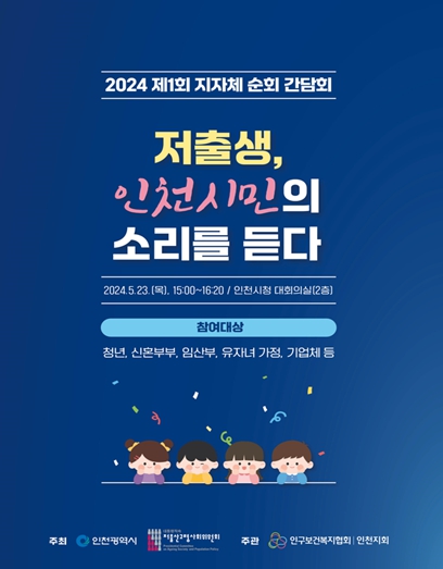 [매일뉴스] 인천광역시는 5월 23일 시청 대회의실에서 정부 ‘저출산고령사회위원회’와 공동으로 주최하고, 인구보건복지협회 인천지회가 주관하는 저출생 대응을 위한 정책간담회를 개최했다고 밝혔다.