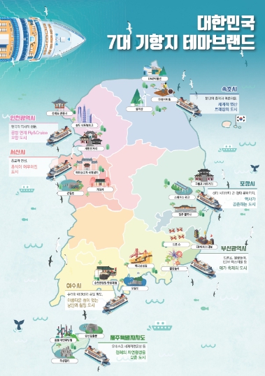 관광객을 전략적으로 지역에 유치하기 위해 7대 기항지별 특색을 담은 테마브랜드(붙임 참고)를 구축한다. 외래 관광객을 대상으로 특화 관광콘텐츠를 개발해 상품화하고 관광벤처 등 사업자 지원, 수용태세 개선 등 종합 지원방안을 마련한다. 국내 기항지 관광 실태조사를 토대로 수요 맞춤형 관광상품을 고도화하고 여행 플랫폼 등 유관 업계와 협업해 국내 모항·준모항 상품(Fly & Cruise*)을 선제적으로 육성한다. 국내 크루즈 시장을 확대하기 위해 연안 크루즈 시범사업을 추진하는 한편, 사업성이 검증된 노선에 대해서는 국내외 크루즈선과 관광객을 적극적으로 유치한다.