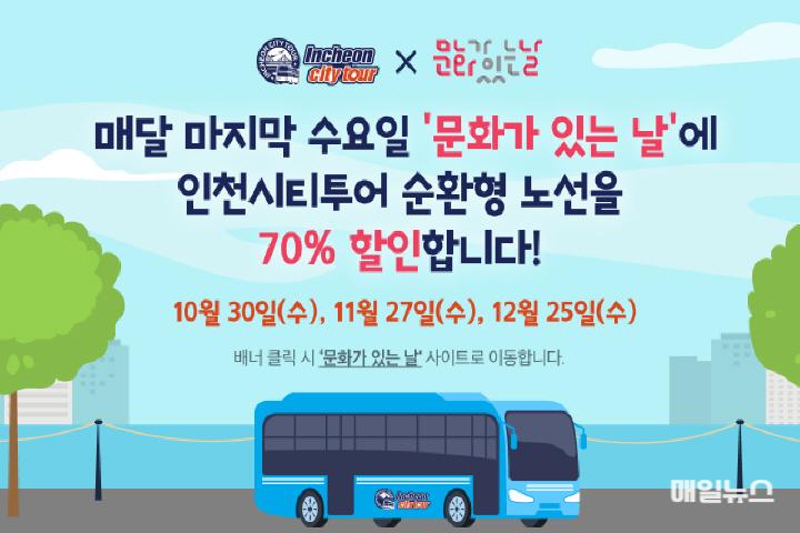 [매일뉴스] 인천시(시장 유정복)와 인천관광공사(사장 백현)는 11월 한달간 인천시티투어 이용객을 대상으로 다채로운 이벤트를 준비했다고 밝혔다.