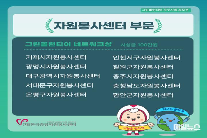 [매일뉴스] 인천서구자원봉사센터(센터장 임경환)는 한국중앙자원봉사센터가 주최하고 행정안전부가 후원하는 ‘2024 그린볼런티어 우수사례 공모전’에서 그린네트워크상을 수상하는 영예를 안았다.