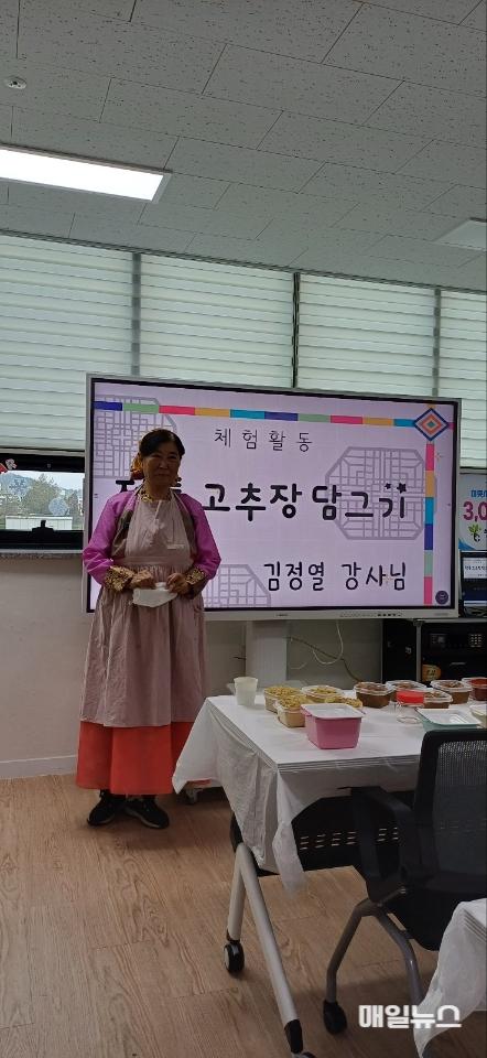 김정열 강사는 수십 년 동안 지역사회의 발전과 잊혀가는 고추장 된장을 손으로 직접 만드는 것을 가리키기 위해, 동분서주하며 봉사와 제자를 양성하는데 많은 심열을 기울이고 있으며, 국내에 몇 명 안되는 전통적인 고추장.된장 담그기의 달인으로 알려져 있다.