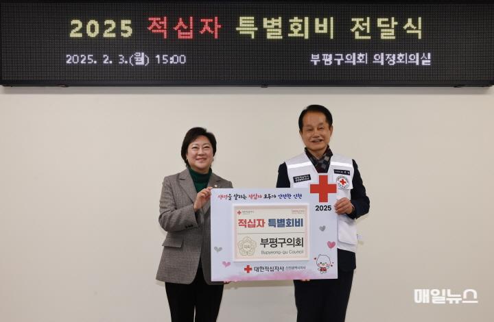 [매일뉴스] 대한적십자사 인천지사(회장 조의영)은 부평구의회(의장 안애경)가 적십자 특별회비 100만원을 전달했다고 전했다.