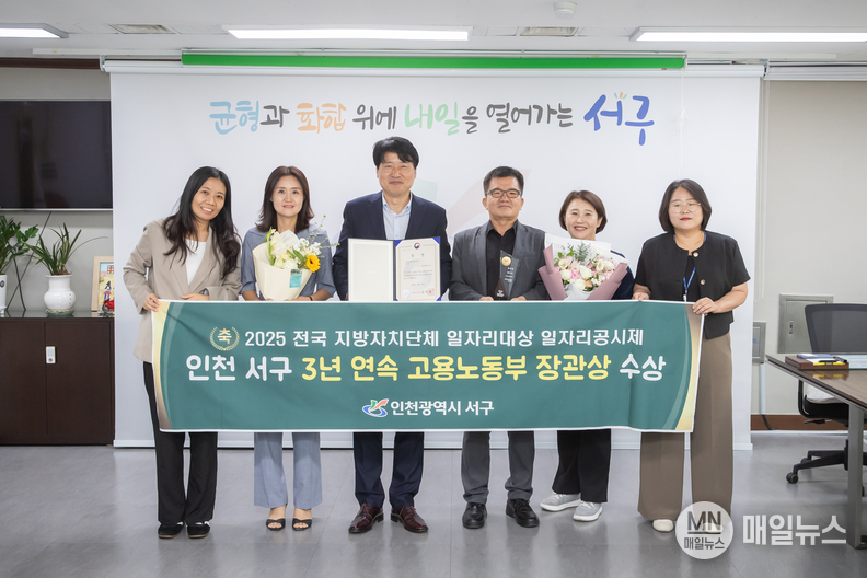 [매일뉴스] 인천 서구(구청장 강범석)가 고용노동부가 주관하는 ‘전국 지방자치단체 일자리 평가’에서 3년 연속 우수 지자체로 선정되며 고용노동부 장관상을 수상했다.