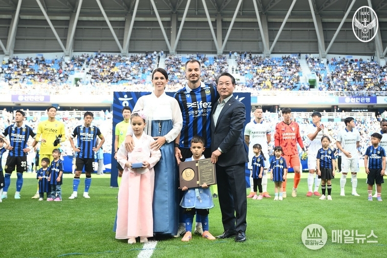 유정복 시장은 “무고사 선수는 단순한 외국인 선수를 넘어, 인천의 자랑이자 시민 모두의 희망이 되어 주었다”며, “인천의 발전과 명예에 크게 기여한 공로를 인정해 명예시민증을 수여하게 되었다”라고 말했다.