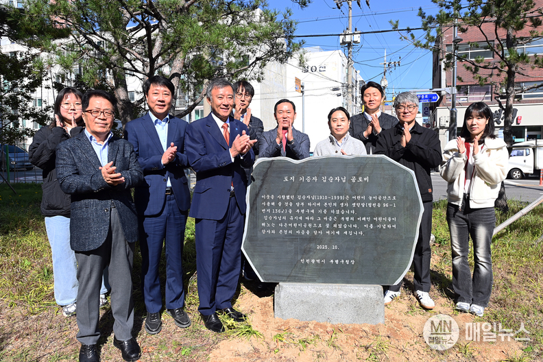 [매일뉴스] 부평구(구청장 차준택)는 청천동에 위치한 다온어린이공원에서 부동산 무상기증자(김순자 씨)의 공로비를 제막했다고 22일 밝혔다.