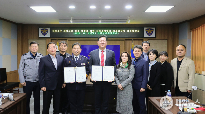 [매일뉴스] 인천 미추홀구(구청장 이영훈)는 27일 미추홀경찰서(서장 김한철)와 치매 환자 실종 예방 및 조기 발견을 위한 업무협약을 체결했다.