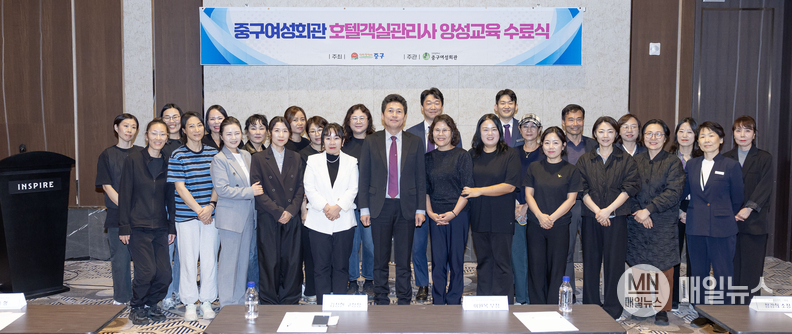 [매일뉴스] 인천시 중구(구청장 김정헌)는 지역 서비스 산업 수요에 맞춘 일자리 연계 교육 프로그램인 ‘2025년도 호텔객실관리사 양성 교육 과정’의 제4기 수료생 11명을 배출했다고 29일 밝혔다.