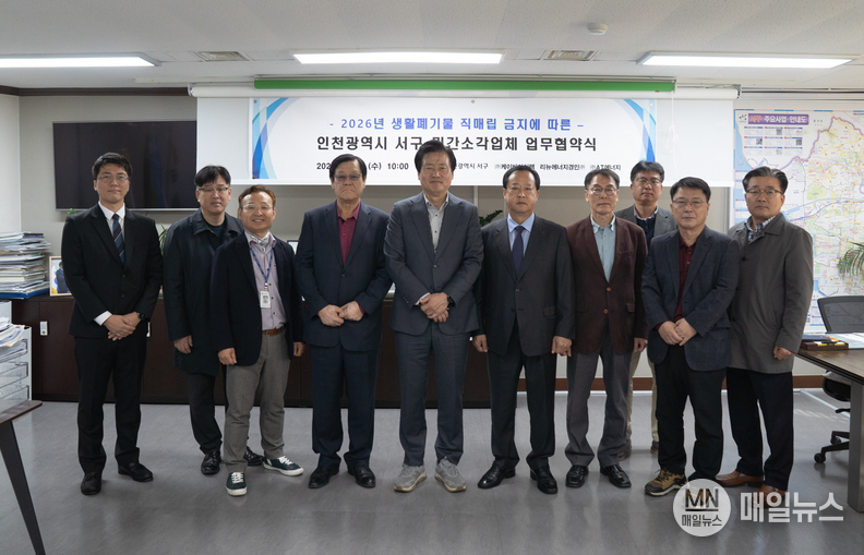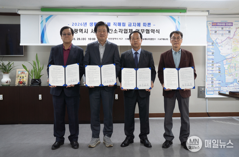 [매일뉴스] 인천 서구(구청장 강범석)는 지난 29일 2026년 생활폐기물 직매립 금지를 대비하여, 민간소각업체와 업무협약식을 개최했다고 밝혔다.