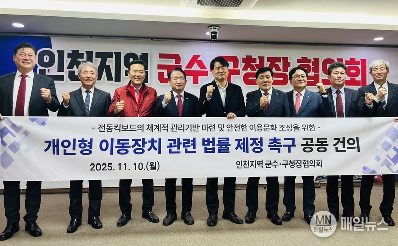 [매일뉴스] 인천 지역 군수·구청장협의회가 전동킥보드 법률 제정을 촉구하는 공동 건의문을 채택했다.