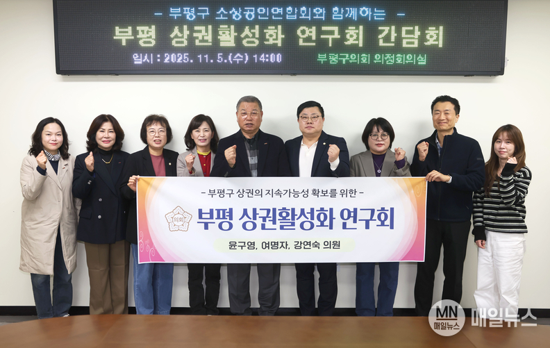 [매일뉴스] 인천 부평구의회 의원연구단체인 “부평 상권활성화 연구회(대표의원 윤구영)”가 소상공인들의 현안 청취와 상권 활성화 방안 모색을 위해 지난 5일 부평구 소상공인연합회와 간담회를 성공적으로 마쳤다.