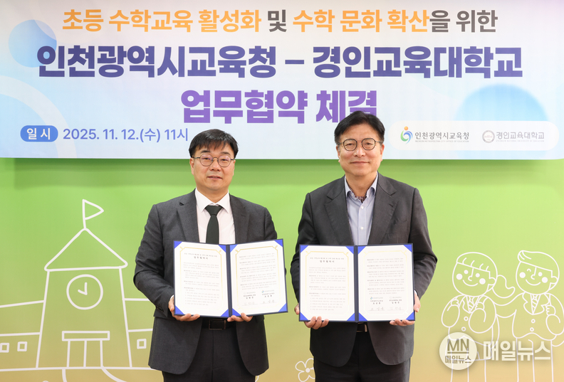 [매일뉴스] 인천시교육청(교육감 도성훈)은 12일 초등 수학교육 활성화와 수학 문화 확산을 위해 경인교육대학교와 업무협약을 체결했다고 밝혔다.