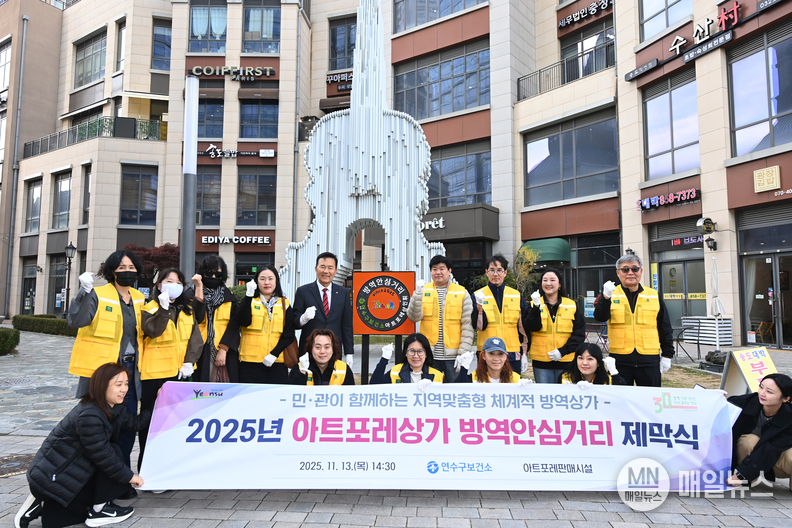 [매일뉴스] 연수구(구청장 이재호)는 감염병으로부터 안심할 수 있는 환경 조성과 주민과 함께 만드는 안전한 방역 문화 정착을 위해 ‘아트포레 판매시설’을 ‘방역안심거리’로 지정하고, 지난 13일 표지판 제막식을 개최했다.