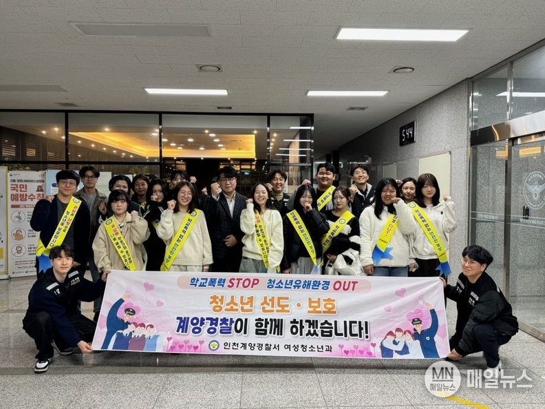 [매일뉴스] 인천계양경찰서(총경 양승현)는 2026학년도 대학수학능력시험 종료 후 그간 긴장감에서 해방된 수험생들의 일시적인 일탈과 비행행위를 예방하기 위해 ‘계양청소년참여정책자문단’ 학생들과 합동하여 계양구 문화의 거리 등지에서 ‘청소년 유해환경 점검 및 청소년 선도·보호 캠페인’을 전개했다.