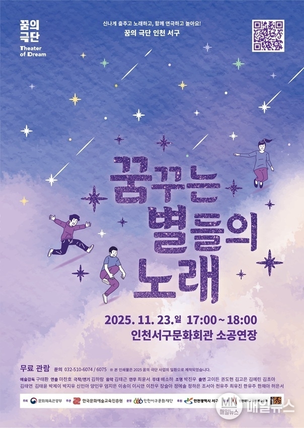먼저, 오는 11월 23일(일) 오후 5시 인천서구문화회관 소공연장에서는 ‘꿈의 극단 인천 서구’의 정기공연 「꿈꾸는 별들의 노래」가 열린다.