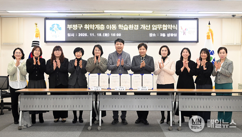 [매일뉴스] 부평구(구청장 차준택)는 지난 18일 사회복지법인 열매나눔재단·부평구다문화가족지원센터와 ‘이주배경 취약계층 아동의 학습환경 개선을 위한 민관 협력체계 구축’ 관련 업무 협약을 체결했다.