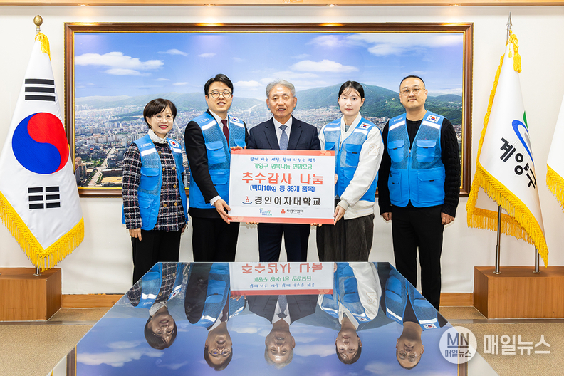 [매일뉴스] 인천시 계양구(구청장 윤환)는 18일 경인여자대학교(총장 육동인)가 추수감사절을 맞아 취약계층 이웃을 돕기 위한 물품을 기탁했다고 밝혔다.