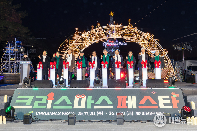 [매일뉴스] 인천시 계양구(구청장 윤환)는 20일 저녁, 계양아라온 북단에서 ‘2025 크리스마스 페스타’ 점등식을 개최하며 계양의 겨울밤을 밝히는 연말 축제의 막을 올렸다.