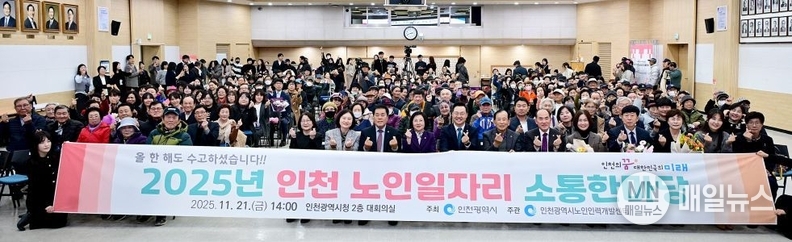인천광역시(시장 유정복)는 인천광역시 노인인력개발센터 주관으로, 11월 21일 시청 2층 대회의실에서 ‘2025년 인천 노인일자리 소통한마당’을 성황리에 개최했다고 밝혔다.