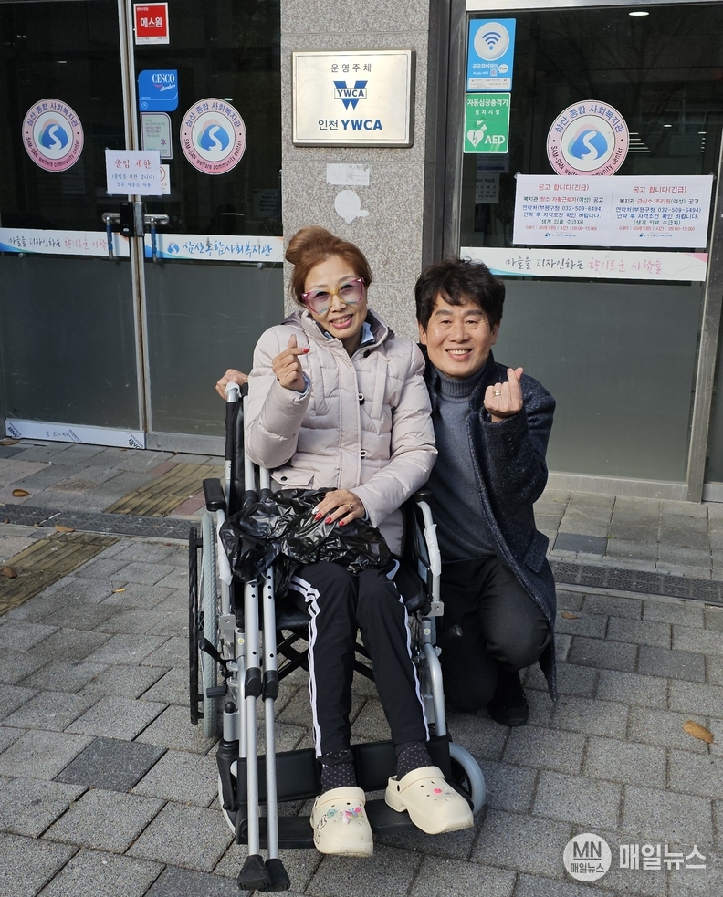 이날 휠체어를 전달받은 나의순 회원은 새 휠체어에 앉은 뒤 환한 미소를 지으며 감사 인사를 전했다.