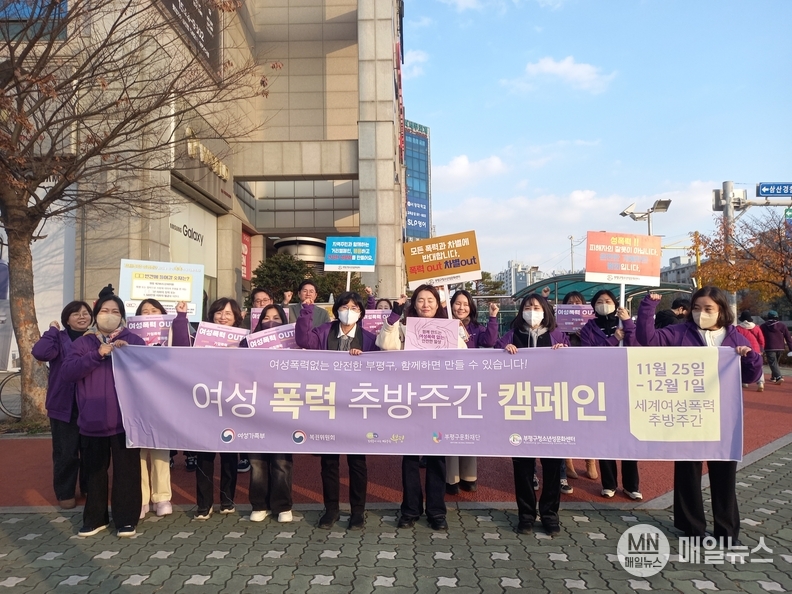 [매일뉴스] 부평구(구청장 차준택) 청소년성문화센터는 여성 폭력 추방주간을 맞아 지난 26일 삼산동 일대에서 성폭력 근절과 예방을 위한 ‘성 인식 개선 거리 캠페인’을 진행했다.