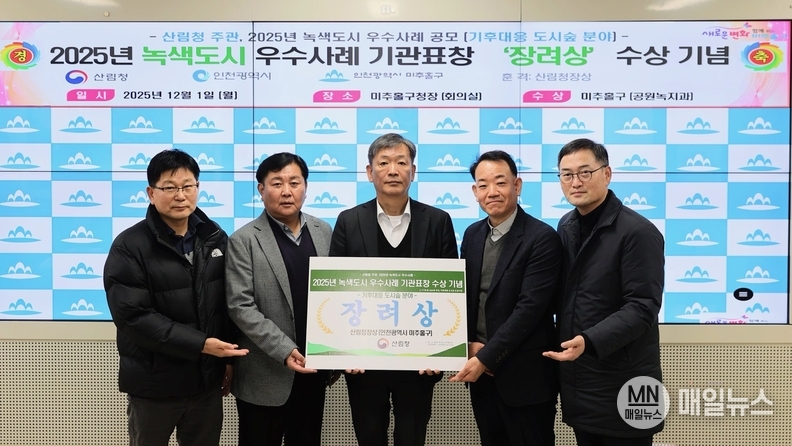 [매일뉴스] 인천 미추홀구(구청장 이영훈)는 산림청이 주관한 ‘2025년 녹색도시 우수사례’ 공모에서 기후 대응 도시 숲 부문 장려상을 받았다고 2일 밝혔다.