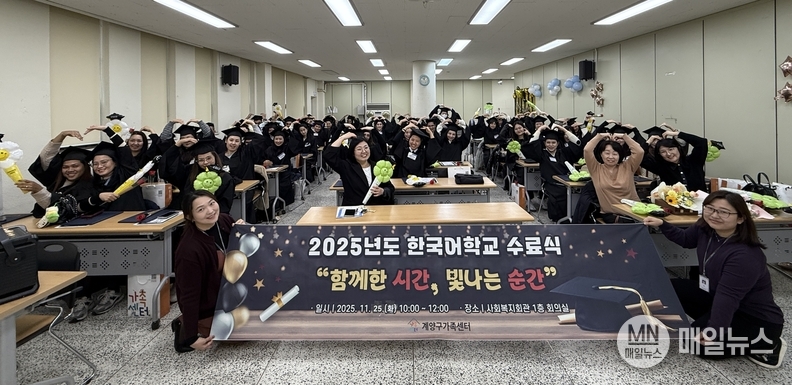 [매일뉴스] 인천 계양구가족센터(센터장 권도국)는 결혼이민자역량강화지원사업 11월 25일 ‘계양우리말학교’의 2025년 수료식을 개최하고 참여자들의 학습 성과를 격려하는 시간을 마련했다.