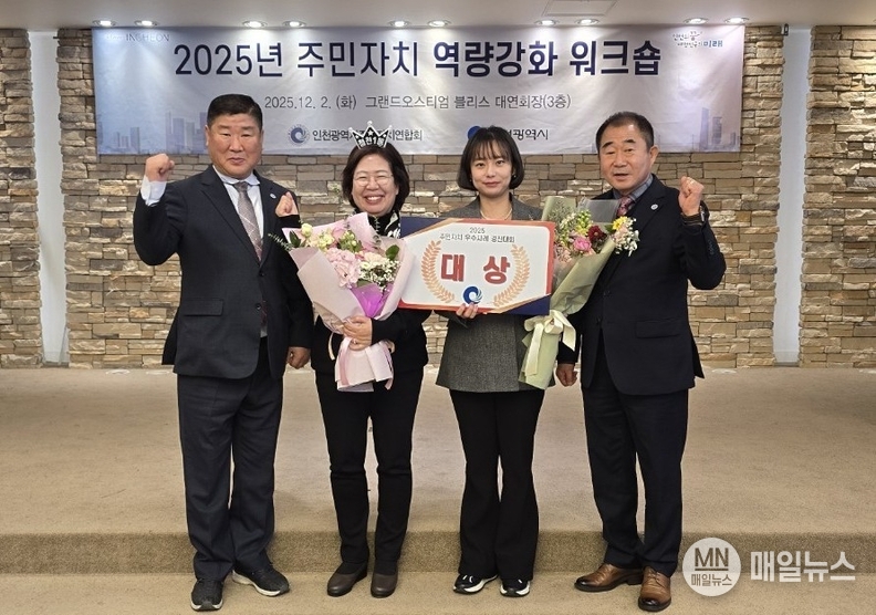 [매일뉴스] 부평구(구청장 차준택) 청천1동 주민자치회는 지난 2일 문학경기장 그랜드 오스티엄에서 진행된 ‘2025년 인천시 주민자치 우수사례 경진대회’에서 대상을 받았다.