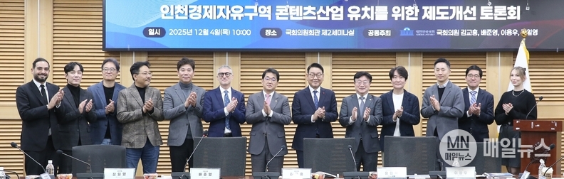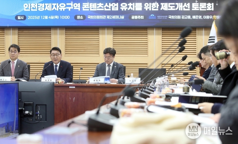 인천경제청은 4일 오전 10시 국회의원회관 제2세미나실에서 김교흥(서구갑, 문체위원장), 배준영(중구강화옹진), 이용우(서구을), 정일영(연수을) 국회의원과 공동으로 ‘인천경제자유구역 콘텐츠산업 유치를 위한 제도개선 토론회’를 개최했다고 밝혔다.