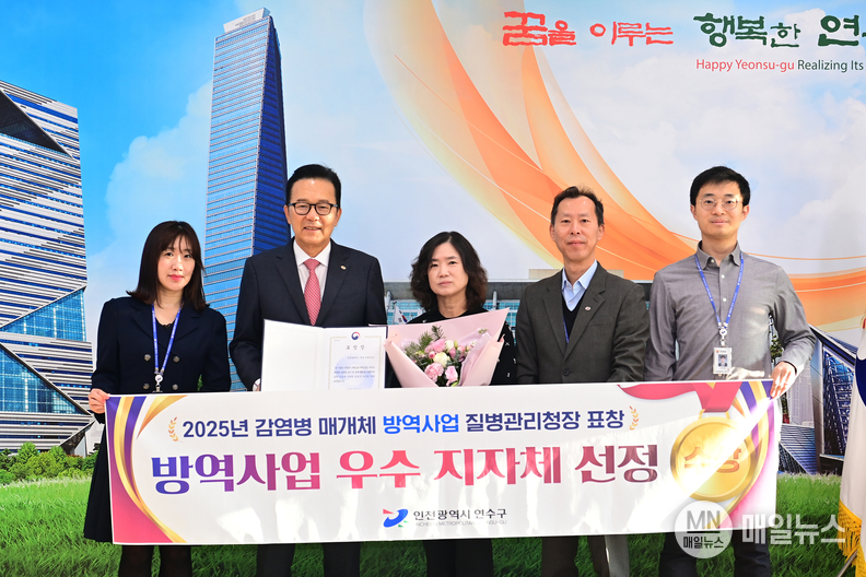 [매일뉴스] 연수구(구청장 이재호)가 ‘2025년 감염병 매개체 관리 평가회’ 방역사업 분야에서 질병관리청장 표창을 받으며 전국적인 방역 모범도시로 자리매김했다.