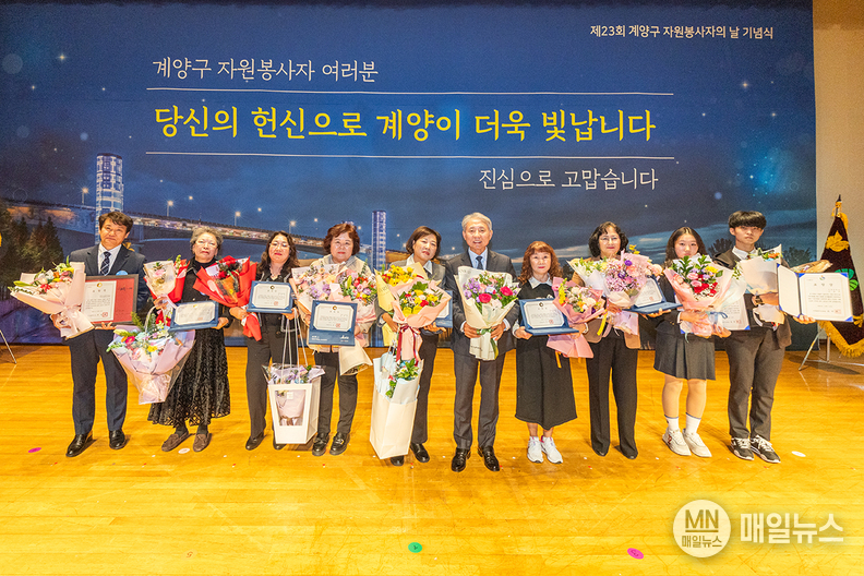 [매일뉴스] 인천 계양구자원봉사센터(센터장 홍순석)는 12월 3일 구청 대강당에서 ‘제23회 계양구 자원봉사자의 날 기념식’을 성황리에 개최했다.