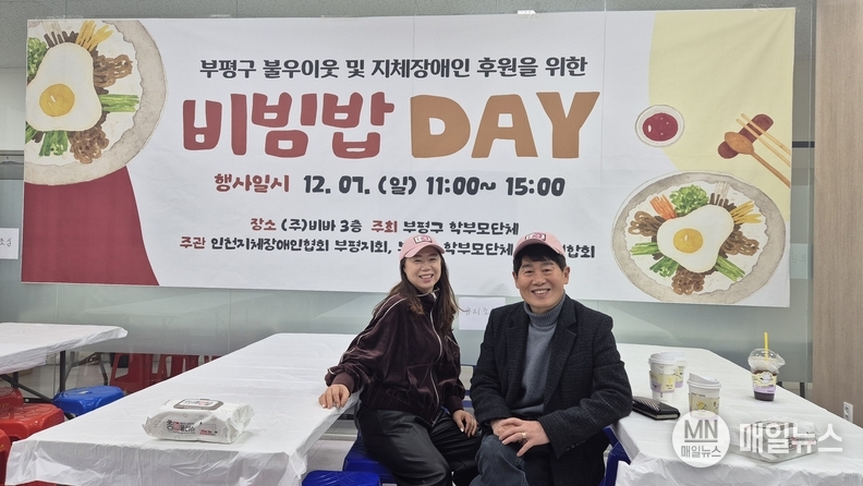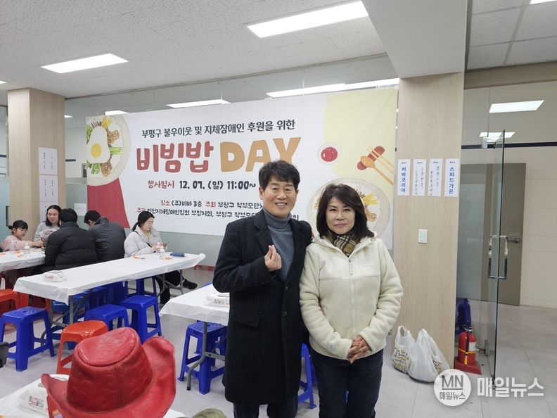 [매일뉴스] 부평의 겨울을 따뜻하게 밝힌 나눔 행사가 지역 곳곳의 관심과 참여 속에 성료했다. 사단법인 인천지체장애인협회 부평지회와 부평구 학부모단체 임원연합회는 지난 7일 오전 11시부터 오후 3시까지 부평구청 중로 100에 위치한 ㈜비바코리아 사옥 3층에서 ‘비빔밥 DAY’를 개최했다.