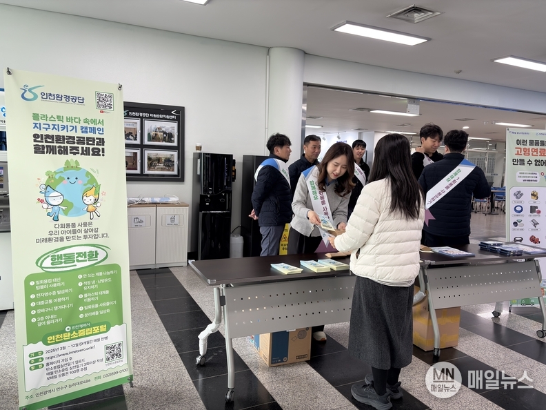 인천환경공단(이사장 김성훈)은 10일 송도자원순환지원센터 실내스포츠시설에서 방문객을 대상으로‘생활폐기물 감량 ‧ 탄소중립 캠페인’을 실시했다.