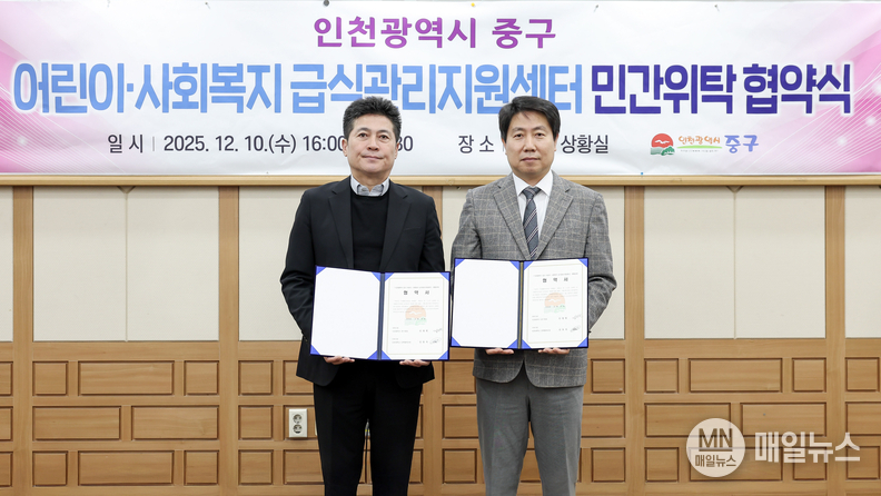 [매일뉴스] 인천시 중구는 최근 인하대학교 산학협력단과 ‘인천 중구 어린이·사회복지 급식관리지원센터 위탁 운영 협약’을 체결했다고 11일 밝혔다.