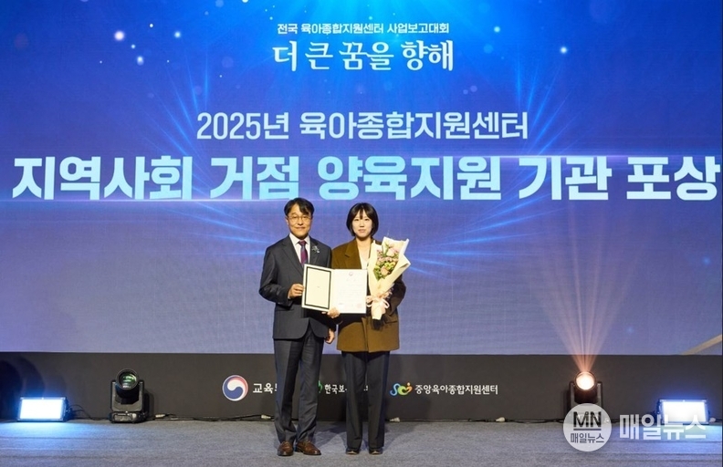 [매일뉴스] 인천연수구육아종합지원센터(센터장 최종미)는 한국보육진흥원(중앙육아종합지원센터) 주관 2025 성과보고회에서 ‘육아쉼표’ 사업 운영 성과를 인정받아 교육부장관상을 받았다.
