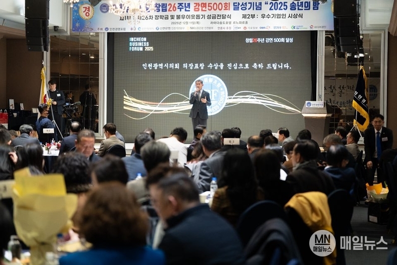 인천광역시의회 정해권 의장(국·연수구1)은 11일 라마다송도호텔에서 열린 ‘인천경영포럼 2025년 송년의 밤’ 행사에 참석해 지역경제 발전을 위해 애쓴 기업인과 회원사를 격려했다.