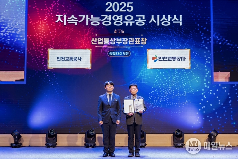 인천교통공사(사장 최정규)는 지난 16일 열린 ‘2025년 지속가능경영유공 정부포상 시상식’에서 종합 ESG 부문 산업통상부장관 표창을 수상했다고 17일 밝혔다.