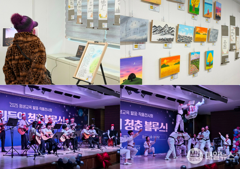 [매일뉴스] 인천 서구노인복지관은 지난 15일 ‘2025 우리들의 청춘 블루스’ 평생교육 프로그램 작품 발표 및 전시회를 개최했다.