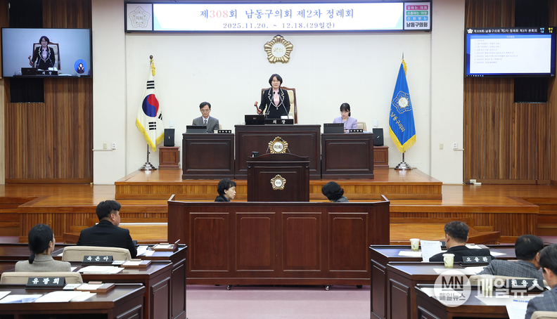 남동구의회(의장 이정순)는 18일 본회의장에서 제308회 제2차 정례회 제3차 본회의를 끝으로 2025년도 회기를 모두 마무리했다.