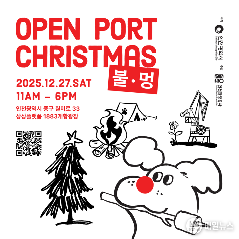 인천광역시(시장 유정복)와 인천관광공사(사장 유지상)는 27일(토) 오전 11시부터 오후 6시까지 인천 상상플랫폼과 1883개항광장에서‘오픈 포트 크리스마스 : 불멍(Open Port Christmas)’을 개최한다고 밝혔다.