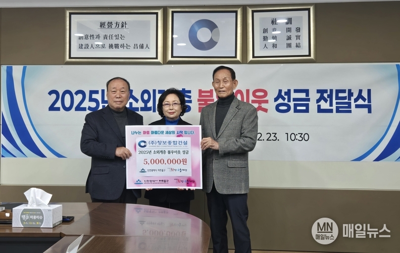 [매일뉴스] ㈜창보종합건설은 지난 23일 (사)학산나눔재단(이사장 김영길, 이하 재단)에 미추홀구 지역 내 소외계층을 위한 이웃돕기 성금 500만 원을 기부했다.