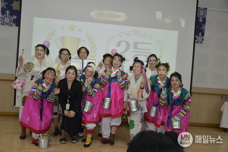 이날 행사 하이라이트인 직원 장기자랑에는 총 7개 팀이 참가해 약 2시간 동안 열띤 경연을 펼쳤다. 치열한 접전 끝에 7조 복지팀이 1위, 1조 간호팀이 2위, 3층 요양보호사팀이 3위를 차지했다.