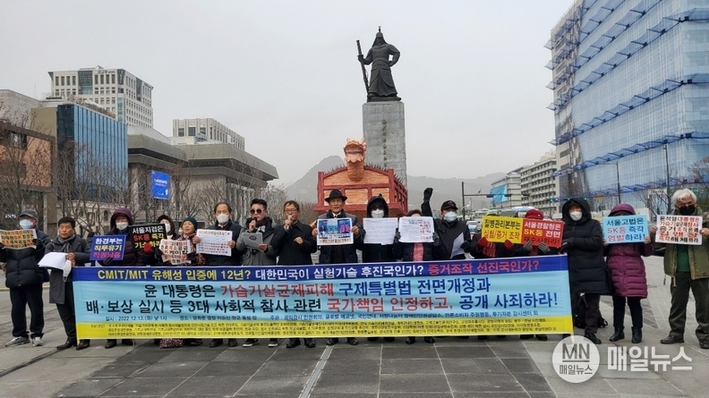 특히 “가해 기업과 정부 간의 배상책임 비율 등에 대한 분쟁이 있을 경우에는 정부가 선배상한 뒤 가해 기업에 구상권을 행사하고, 국회는 신속하게 특별법 제정과 가해 기업에 대해서는 집단소송제도와 징벌적 손해배상제도 등을 확립할 수 있도록 법률을 정비하라!”라고 강조했다.