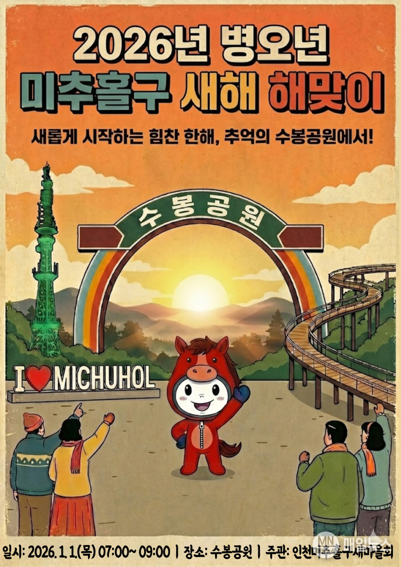 [매일뉴스] 인천 미추홀구새마을회(회장 추호성, 이하 새마을회)는 오는 2026년 1월 1일 오전 7시부터 9시까지 수봉공원에서 ‘2026 병오년(丙午年) 새해 해맞이 행사’를 개최한다.