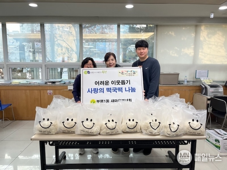 [매일뉴스] 부평구 부평1동 새마을부녀회는 지난 29일 홀몸 어르신 및 취약계층 40가구를 대상으로 ‘사랑의 떡국떡 나눔’ 행사를 진행했다.