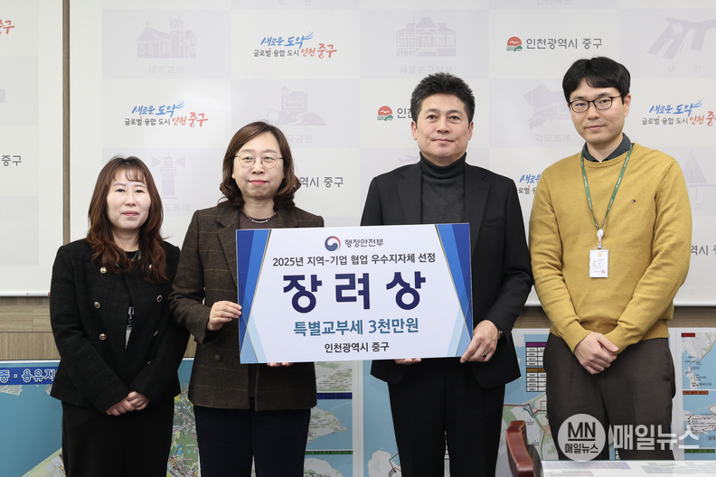 [매일뉴스] 인천시 중구는 ‘호텔객실리사 양성 교육’을 성공적으로 운영하며, 행정안전부 주관 ‘2025년 지역-기업 협업 우수사례 공모’에서 장려상을 받았다고 31일 밝혔다. 이번 수상으로 ‘특별교부세 3천만 원 확보’ 성과도 함께 거뒀다.