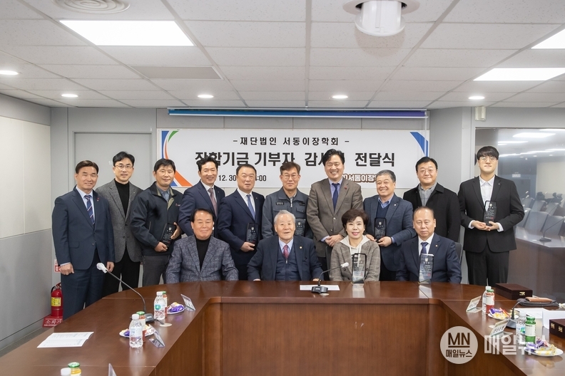 [매일뉴스] 인천 서구 재단법인 서동이장학회(이사장 강범석 서구청장)는 지난 30일 서구청 재난안전상황실에서 지역 인재 양성을 위해 장학기금을 기부한 민간 기부자에게 감사패를 전달했다.