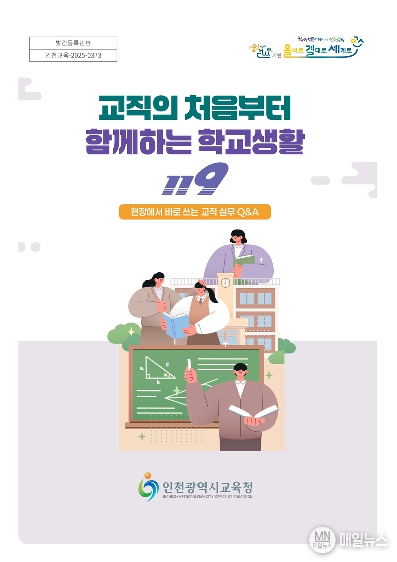 [매일뉴스] 인천시교육청학교지원단(단장 곽미혜)은 저경력 교사가 학교 현장에서 겪는 업무 부담을 완화하고 안정적인 정착을 돕기 위해 「교직의 처음부터 함께하는 학교생활 119」 업무도움자료를 제작해 각급 학교에 배포한다고 7일 밝혔다.