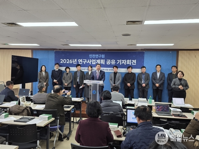 인천연구원(원장 최계운)은 2026년 사업계획을 확정하고, 이를 시민과 언론에 공유하기 위해 2026년 1월 7일 오전 10시, 인천광역시청 브리핑룸에서 <2026년 연구사업계획 공유를 위한 신년 기자회견>을 개최했다.