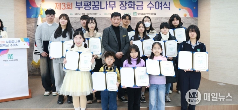 [매일뉴스] 부평꿈나무장학후원회는 10일 오전 11시 인천 부평구 한길안과 10층에서 ‘제3회 꿈나무 장학금 수여식’을 개최하고, 지역 아동·청소년들의 꿈과 성장을 응원하는 뜻깊은 시간을 가졌다.
