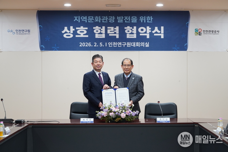 [매일뉴스] 인천관광공사(사장 유지상)와 인천연구원(원장 최계운)은 5일 인천연구원에서 지역관광산업 발전을 위한 업무협약(MOU)을 체결했다.